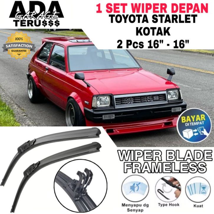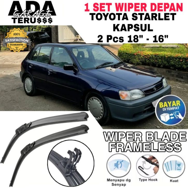 Wiper ade Frameless Mobil Toyota Starlet Sepasang 2 Pilihan Ukuran Full Karet Anti Baret Pembersih