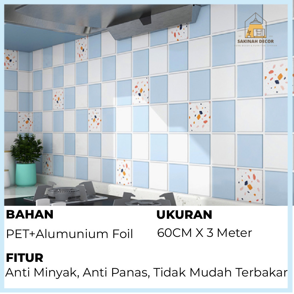 Wallpaper Stiker 60cm x 3m Dinding Dapur Anti Minyak / Air / Tahan Suhu Panas PVC/Vynil 027A-SD