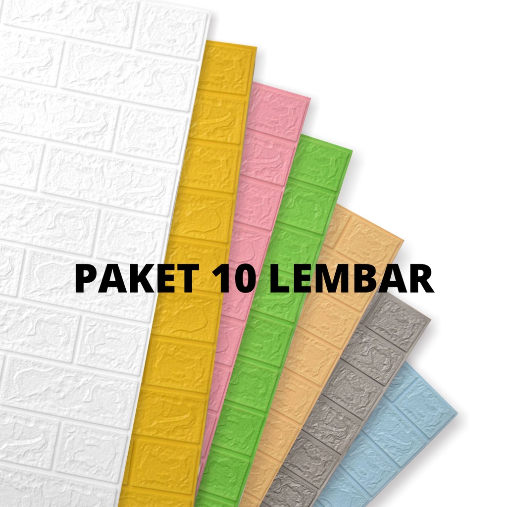 () Paket 10 Lembar Wallpaper Sticker 3D Foam Wallfoam Anti Air Motif Bata [SERI A]