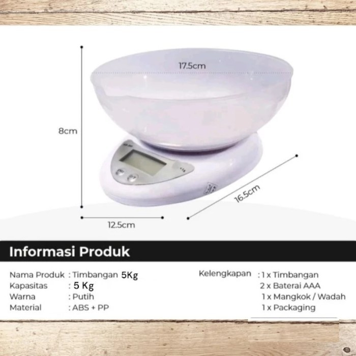 Timbangan Mangkok Digital 5KG B05 Timbangan Dapur Tepung Kue Gula 5 KG Electronic Kitchen Scale