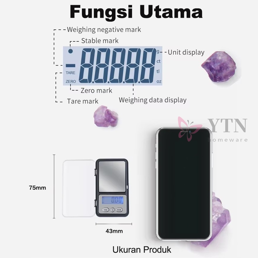 Timbangan Mini Digital 200 Gram / 0.1 Gram/Timbangan Perhiasan Kopi Bumbu Pocket/Layar LCD