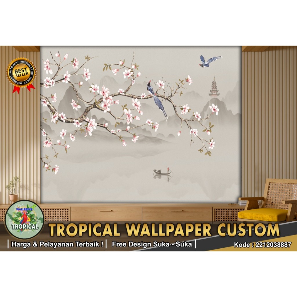 Wallpaper Dan Wallstiker Custom 3D Tema Chinnoserie | Wallpaper Dinding | Wallpaper Custom | Wallpaper Leaf | Wallpaper