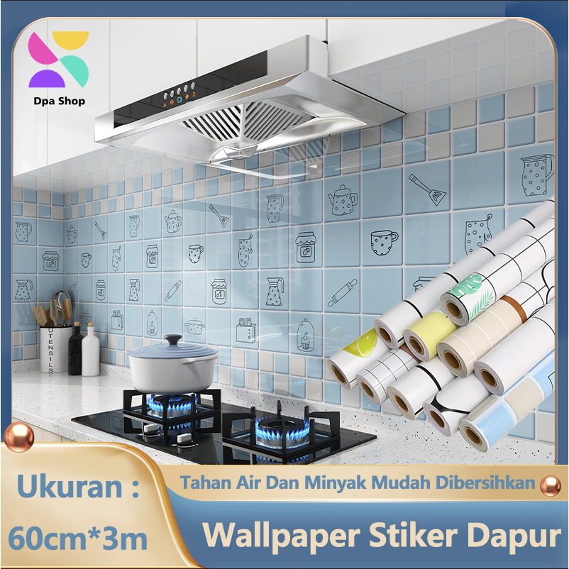 Wallpaper Sticker Dapur Wall Sticker Anti Minyak Dapur Kitchen Sheet Ukuran 60cm X 3Meter Anti Minyak / Air / Tahan Pana