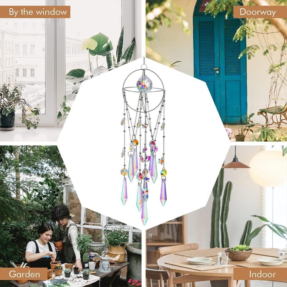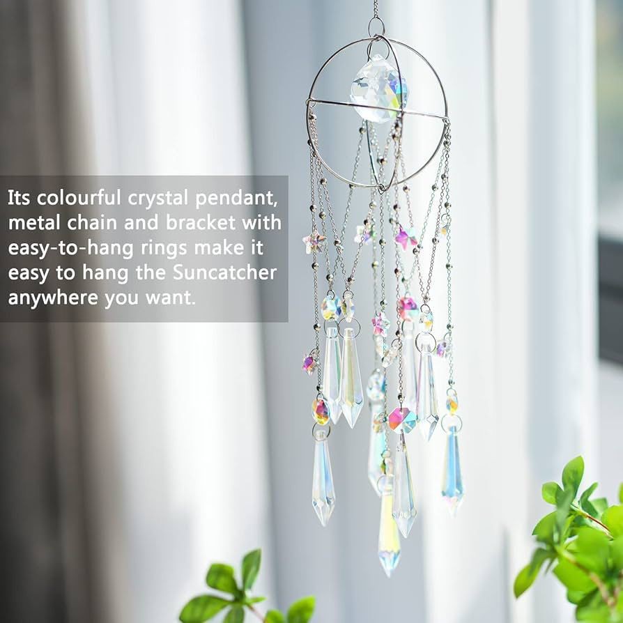 Dekorasi Gantung Ruang Romantis Lonceng Angin Penangkap Matahari Kristal Liontin Pelangi Dreamcatcher Gaya Bintang Bulan