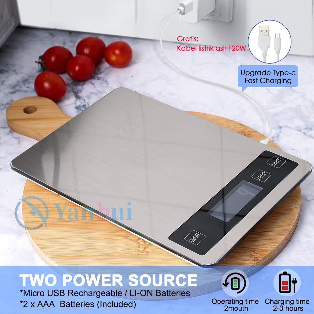 Timbangan Digital Max 10Kg Dapur Charge USB/ Cas Untuk Masak / Kue Timbangan Dapur Kue Tahan Air