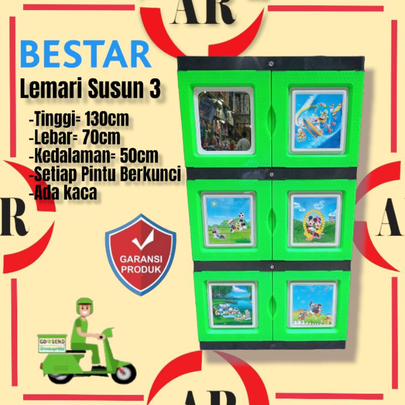 ( INSTANT )LEMARI PAKAIAN PLASTIK / LEMARI BAJU SUSUN 3 dan 4 BESTAR "KACA ( PRODUK BESAR)