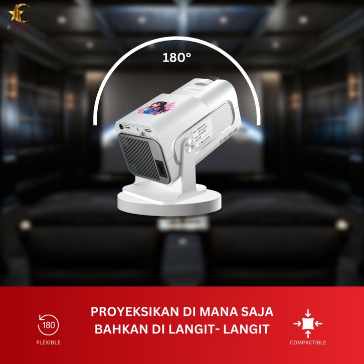 Proyektor Mini Android Smoon320Smart Projector TV 1080P 6000 Lumens Ram 2G Rom 16G Layar Tancap Epson HY300 Smoon HP