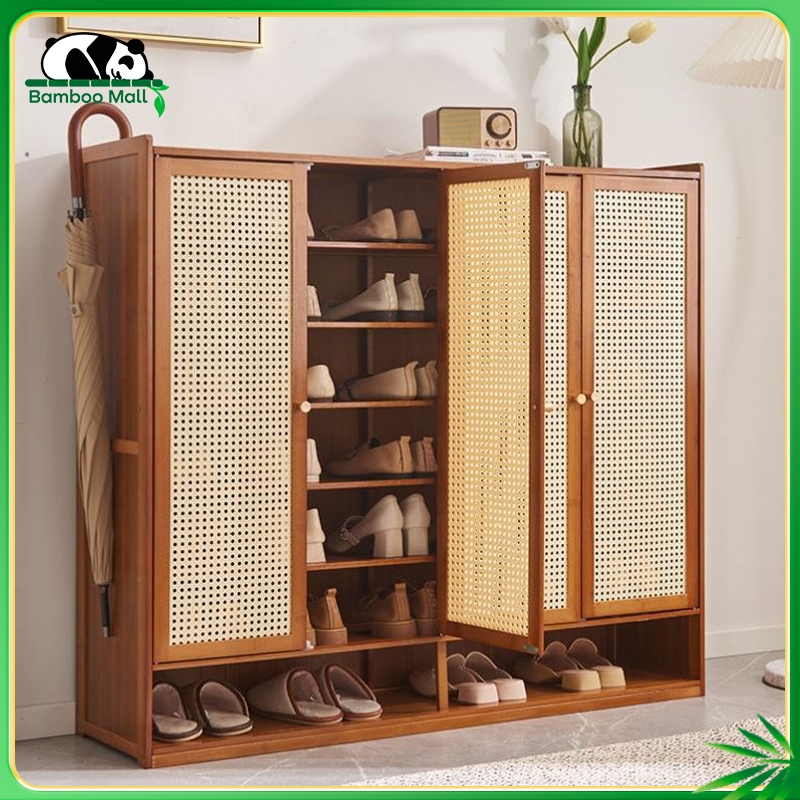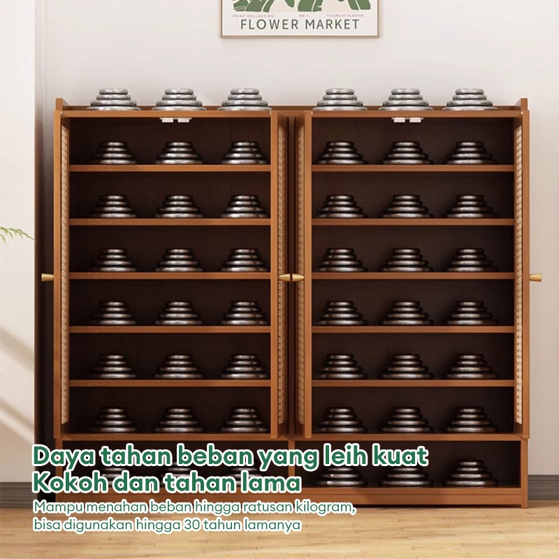 [Mall] Rak Sepatu Susun Kayu Lemari Sepatu Tertutup Rak Sepatu Rotan Tertutup Estetik Teras