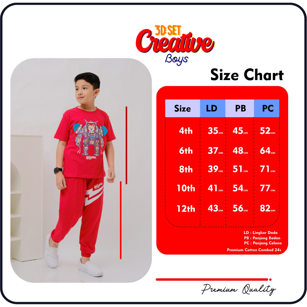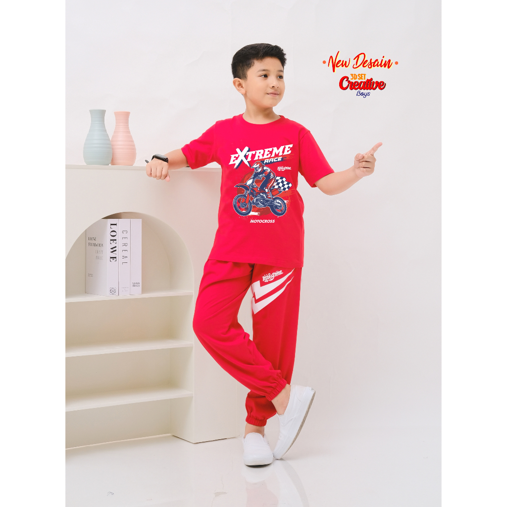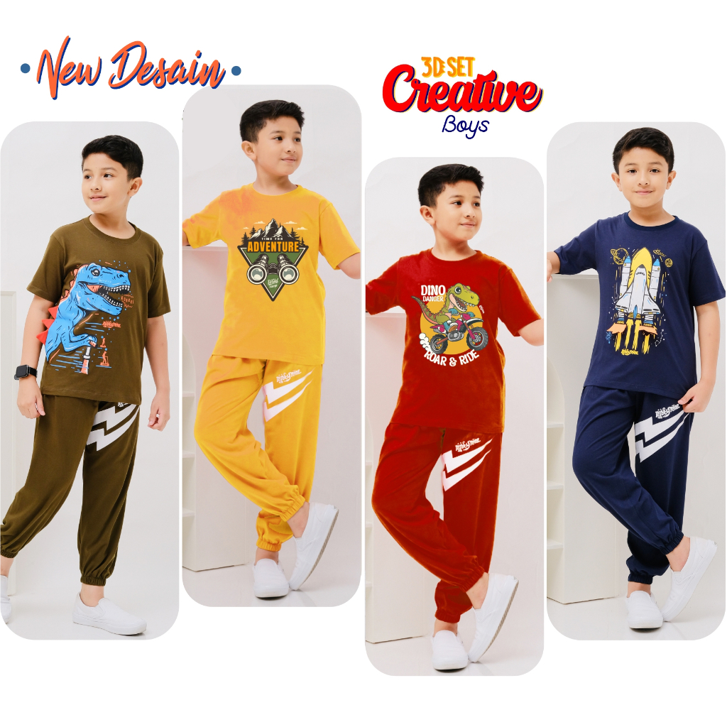 Setelan anak laki-laki Kaos anak 3D keren cotton combed 24s Piyama anak celana anak usia 4 - 12 tahun Creativy bahan pre
