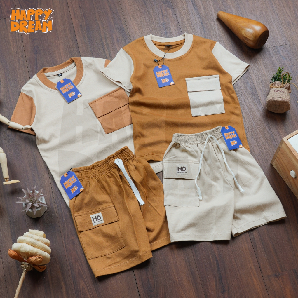 HAPPYDREAM Kaos Baju Setelan Anak Aplikasi Saku Ford Laki Laki Perempuan 1 - 8th cotton 30s