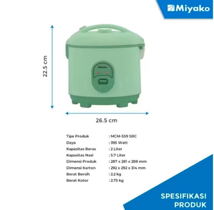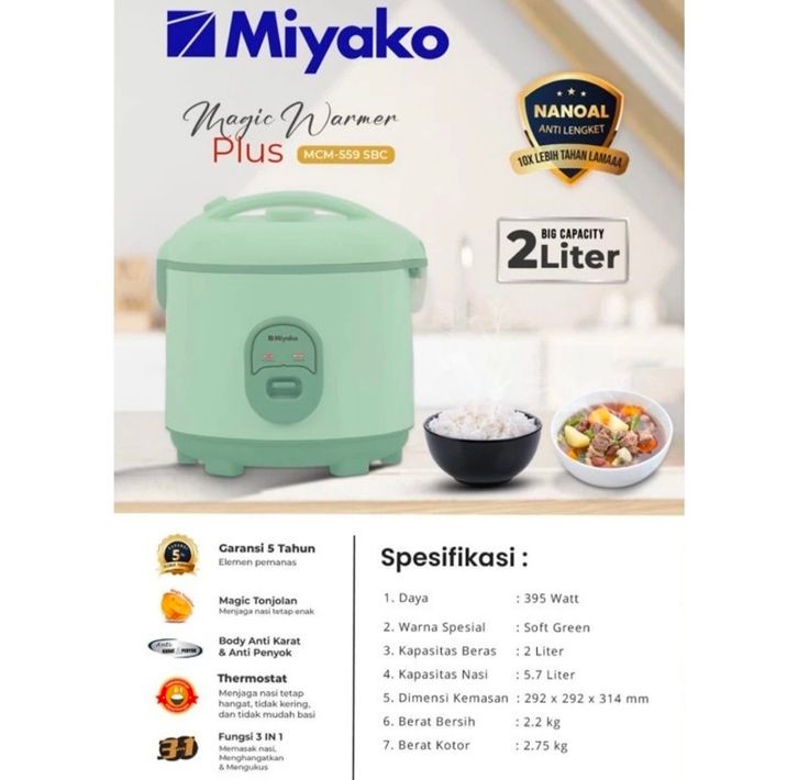 MIYAKO RICE COOKER MCM 559 SBC MAGIC COM MIYAKO MCM 559 SBC 2LITER GARANSI RESMI