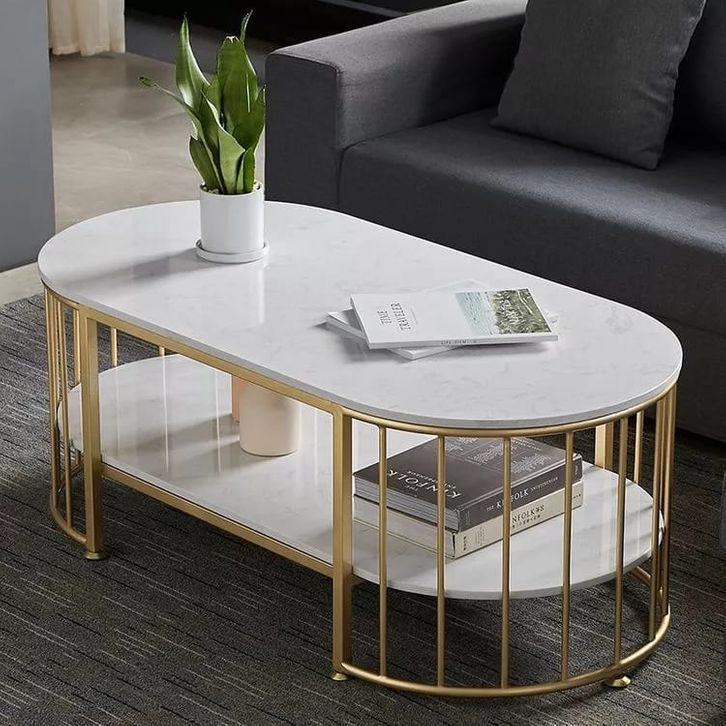 PROMO Meja Tamu oval marble gold meja coffee table meja oval marble gold minimalis Untuk Ruang tamu/Cafe/Ruangan WT