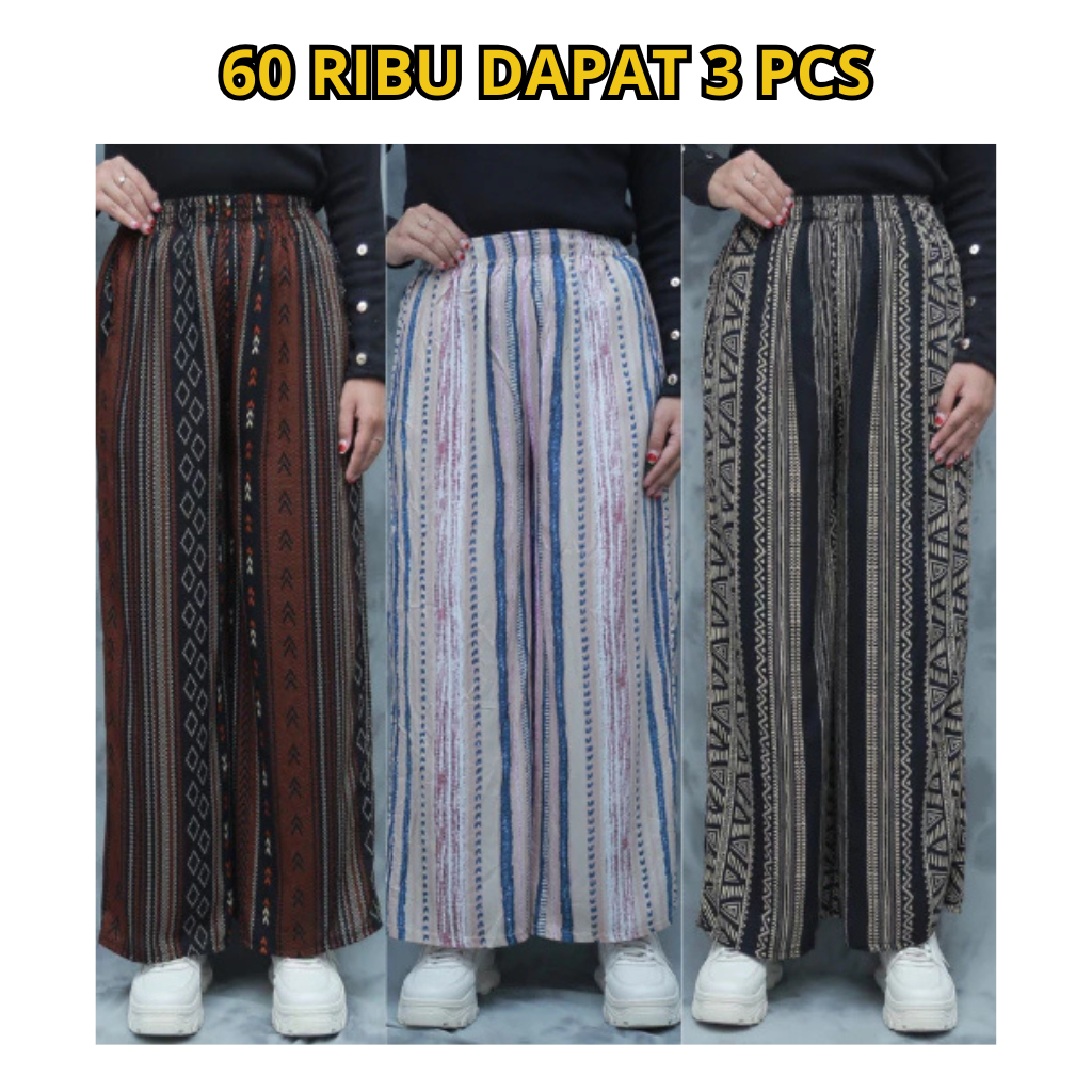 Paket 3pcs Kulot Rayon Murah / Kulot Rayon High Waist / Celana Panjang Kulot Hommy / Kulot Motif Kekinian Terbaru