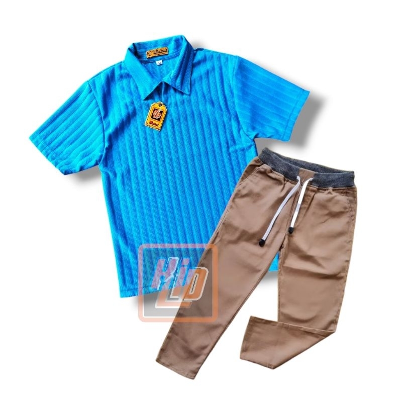 Setelan Baju Anak Kaos Polo Knit Celana Chinos Panjang Premium Adem 2-12 tahun By Klambi ID
