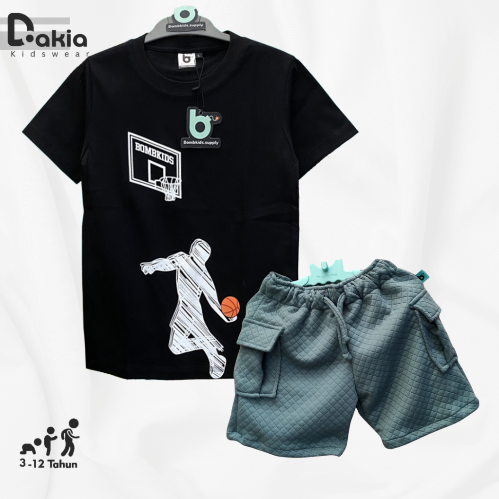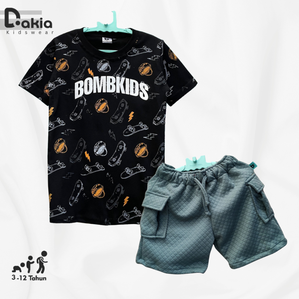 SETELAN KAOS DAN CELANA ANAK DIAMOND PENDEK UMUR 3-12 TAHUN FULLPRINT SAGE SERIES