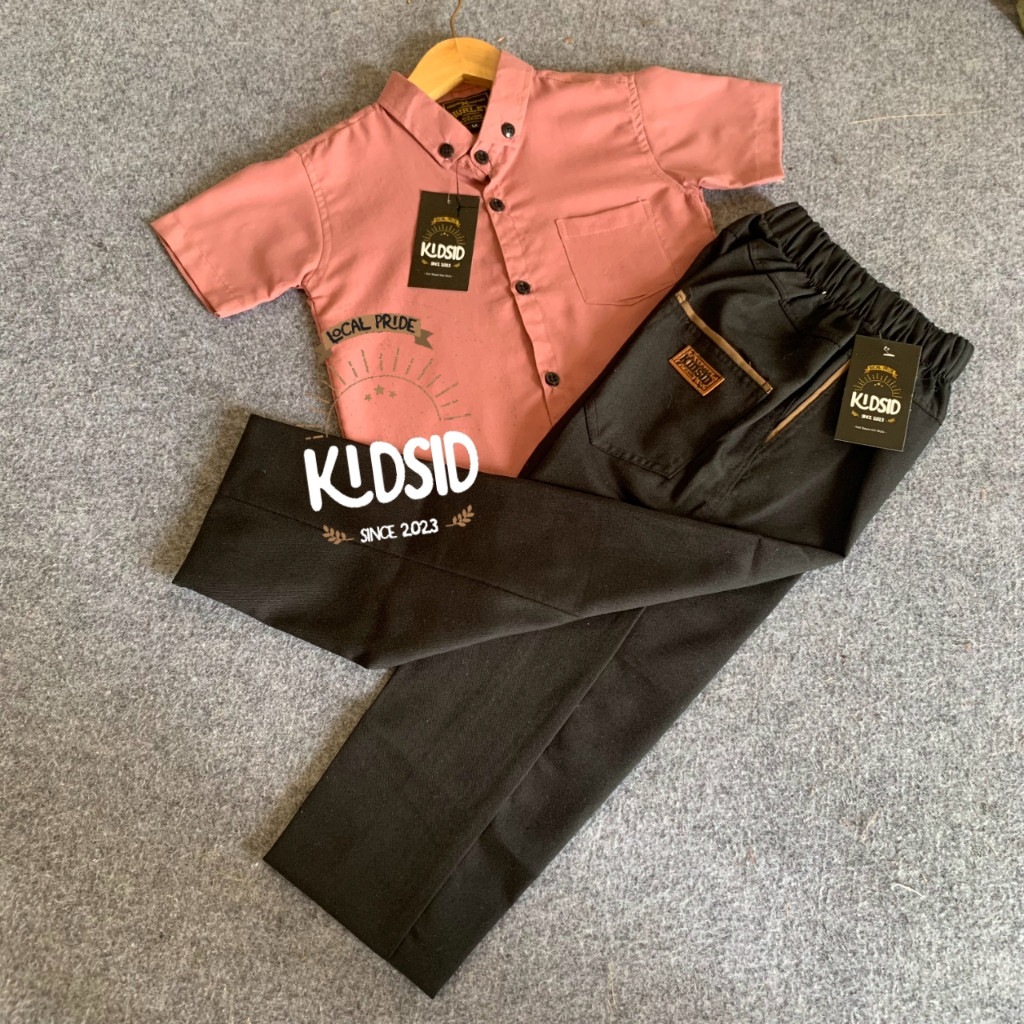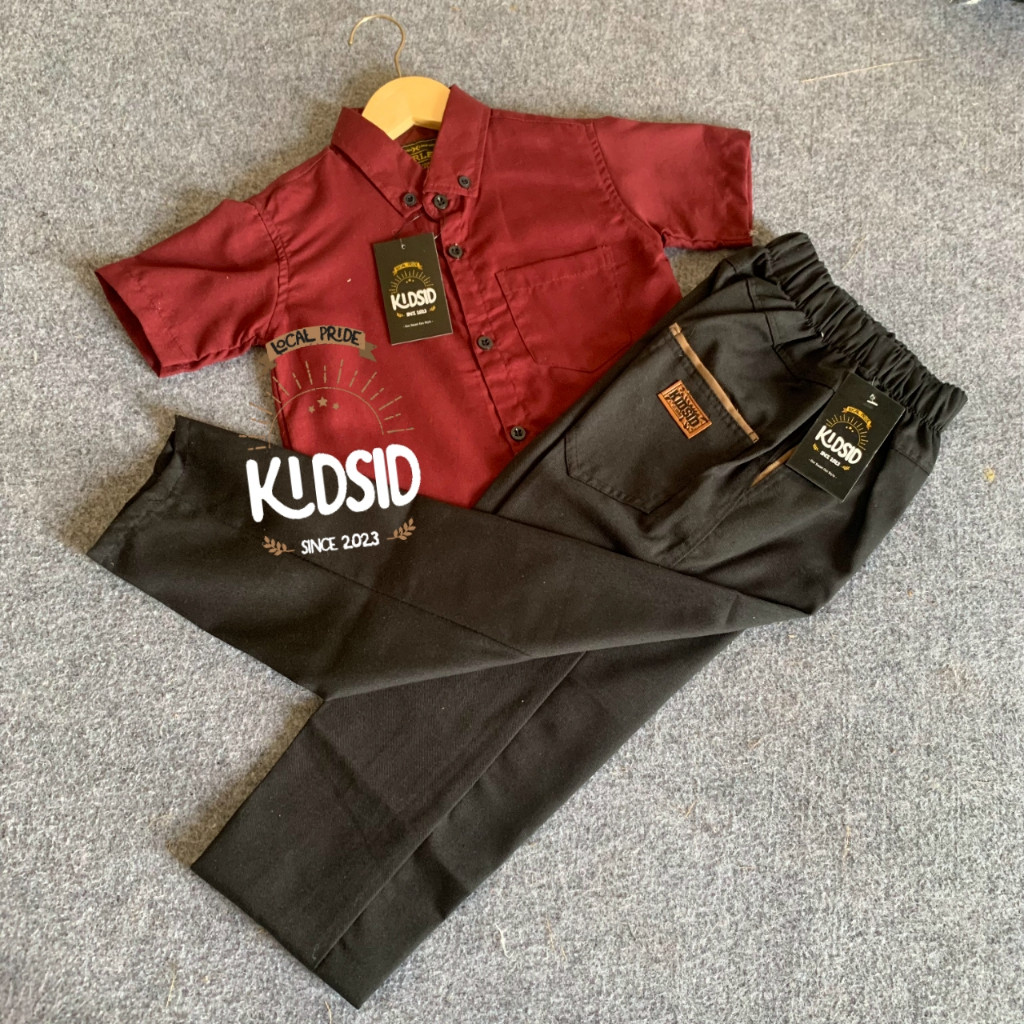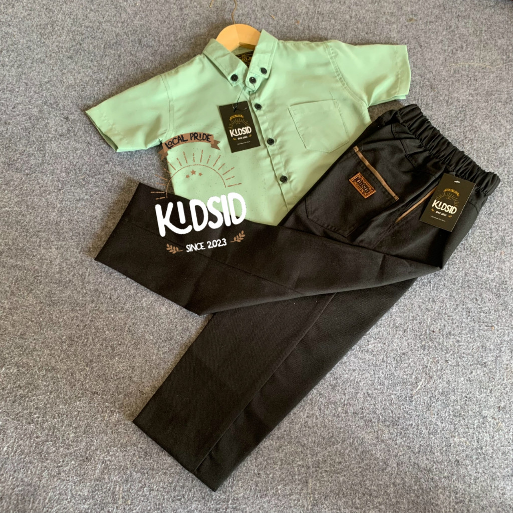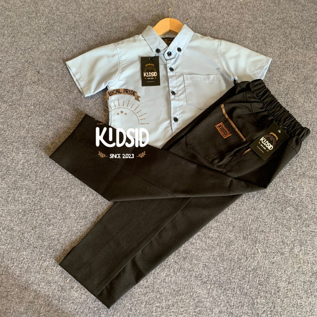 Setelan Kemeja Anak Laki-laki Lengan Pendek Warna Biru Muda Usia 1-14 Tahun & Celana Panjang Katun | Setelan Kemeja Polo