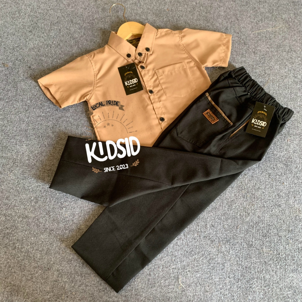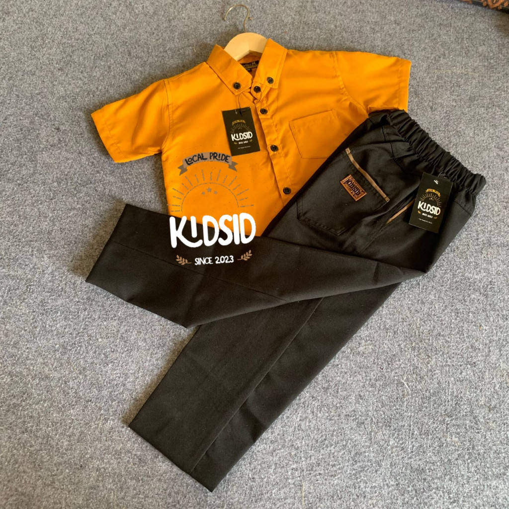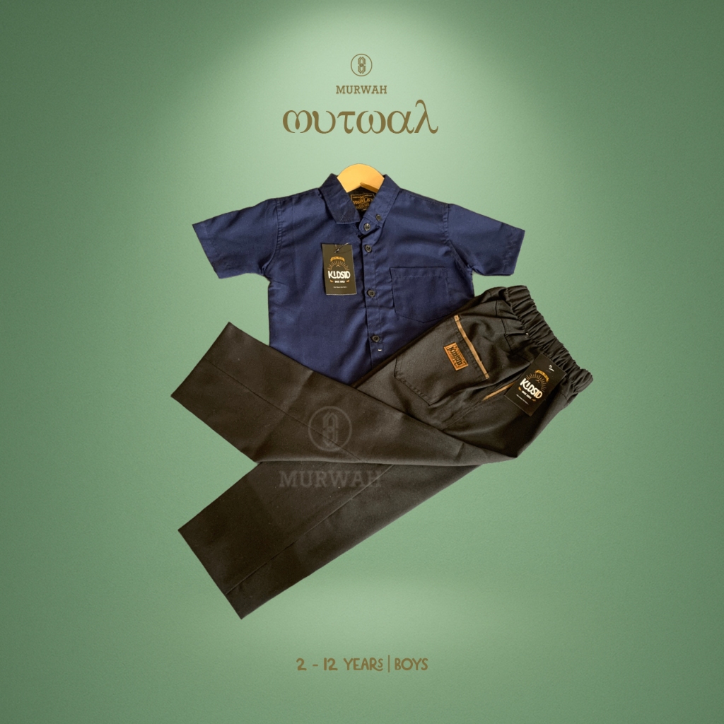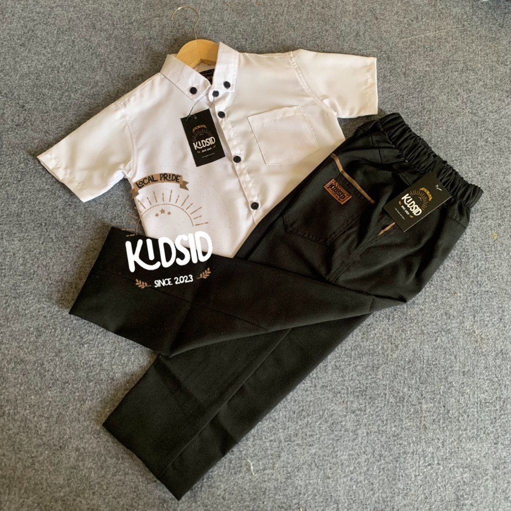 Setelan Kemeja Anak Laki-laki Lengan Pendek Warna Biru Muda Usia 1-14 Tahun & Celana Panjang Katun | Setelan Kemeja Polo