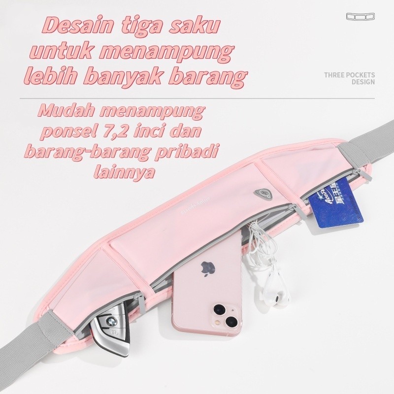 Tas Pinggang Lari Sabuk Ponsel Olahraga Pria dan Wanita Multifungsi Peralatan Perjalanan Kebugaran Kapasitas Besar