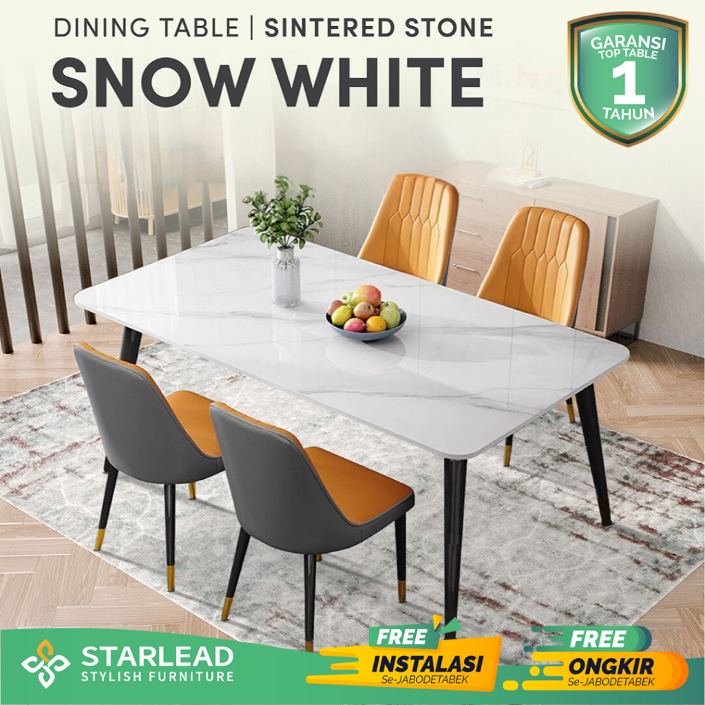 [Mall] Set Meja Makan Batu Sinter Sintered Stone Dining Table - Snow White Ermine Grey