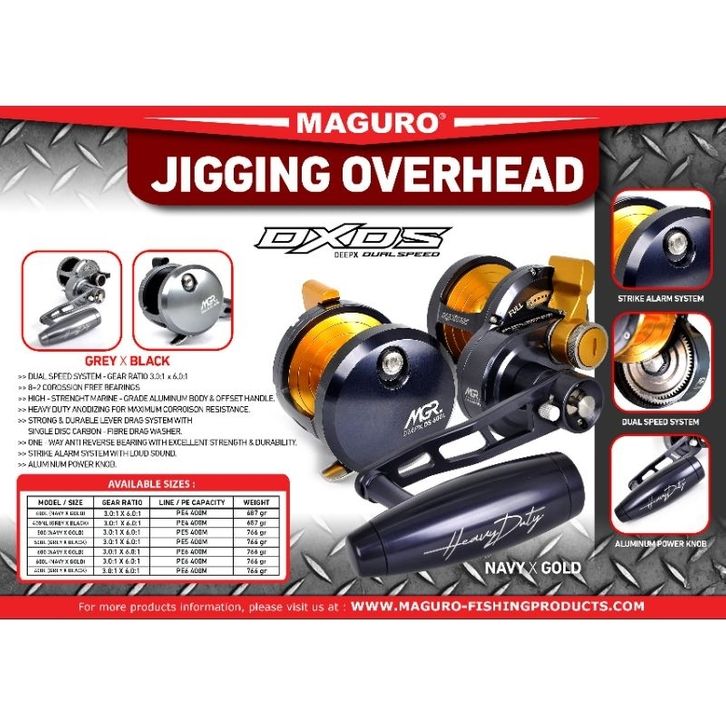 reel maguro overhead deep x ds 400 500 600 double drag sistem