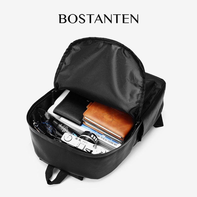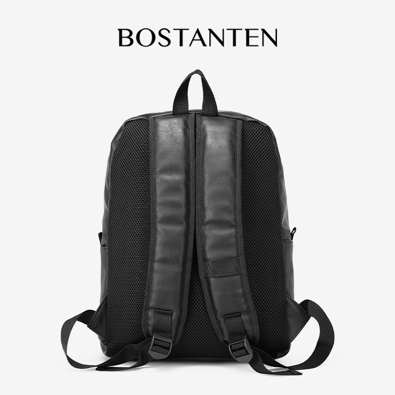 BOSTANTEN Ransel Kasual Kulit PU Warna Hitam Tas Sekolah Siswa Tas Kerja
