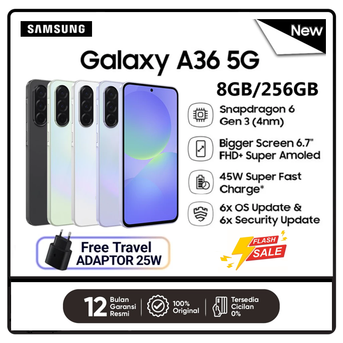 HP SAMSUNG GALAXY A36 5G 8/256GB GARANSI RESMI Qualcomm Snapdragon 6 Layar Super AMOLED 6,7 inci NFC 5.000 mAh