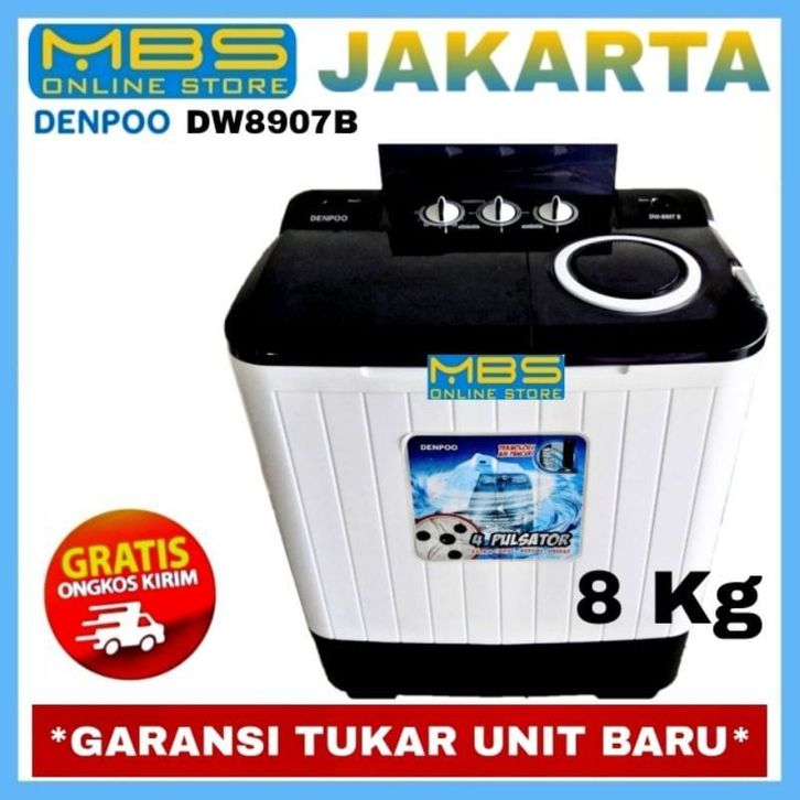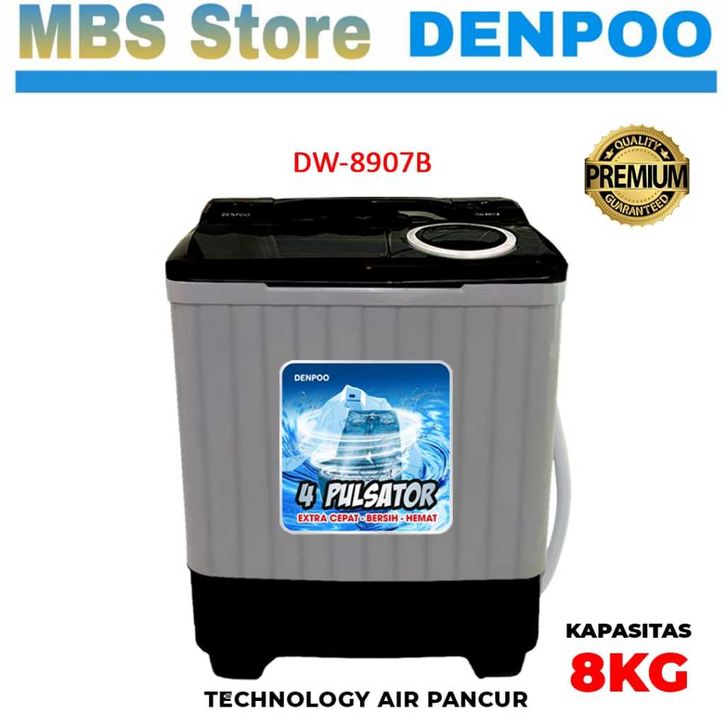 Mesin Cuci 2 Tabung 8 Kg DENPOO DW 8907B Turbo Pulsator