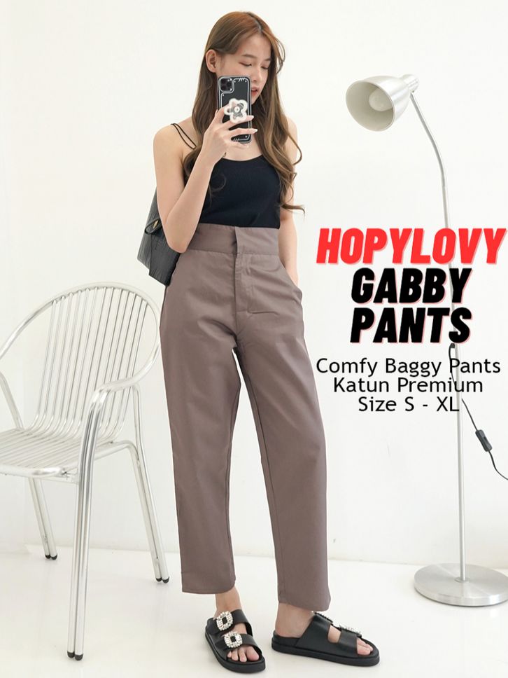 Celana Panjang Wanita Baggy Gabby High Waist Katun Adem Nyaman Dipakai untuk Kerja Harian Stylish Elegan Terbaru