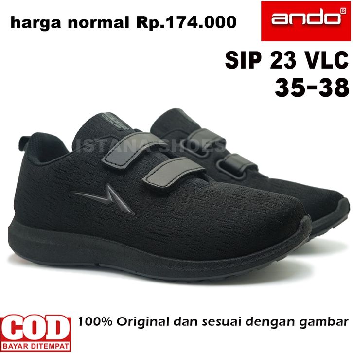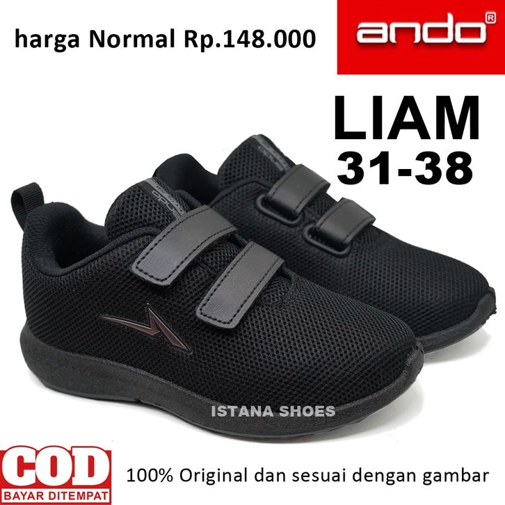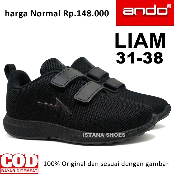 SEPATU SEKOLAH ANAK LAKI LAKI PEREMPUAN PAUD TK SD SMP ANDO LIAM PEREKAT HITAM SNEAKERS