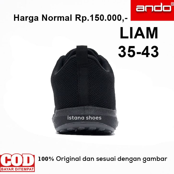 Sepatu Sekolah Model Terbaru ANDO LIAM Hitam Anak Laki Laki Perempuan SD SMP SMA REMAJA DEWASA Sneakers