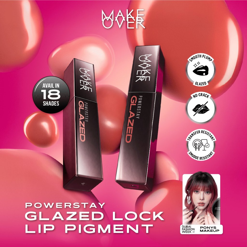 MAKE OVER Powerstay Glazed Lock Lip Pigment - Plump Glazed - Lip Gloss | Merah Jingga Official