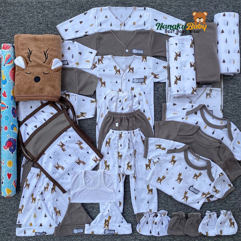 Nanaku Baby - Isi 47 PCS Paket Lahiran Lengkap Set Kado Series Lengkap Setelan Baju Celana Bayi Baru Lahir
