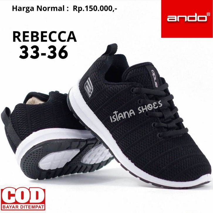 SEPATU ANAK SEKOLAH PEREMPUAN LAKI LAKI SD SMP SMA REMAJA MODEL TERBARU ANDO REBECCA HITAM PUTIH, SEPATU SEKOLAH HITAM