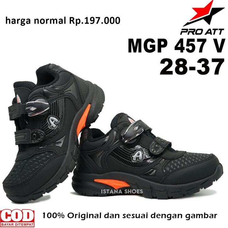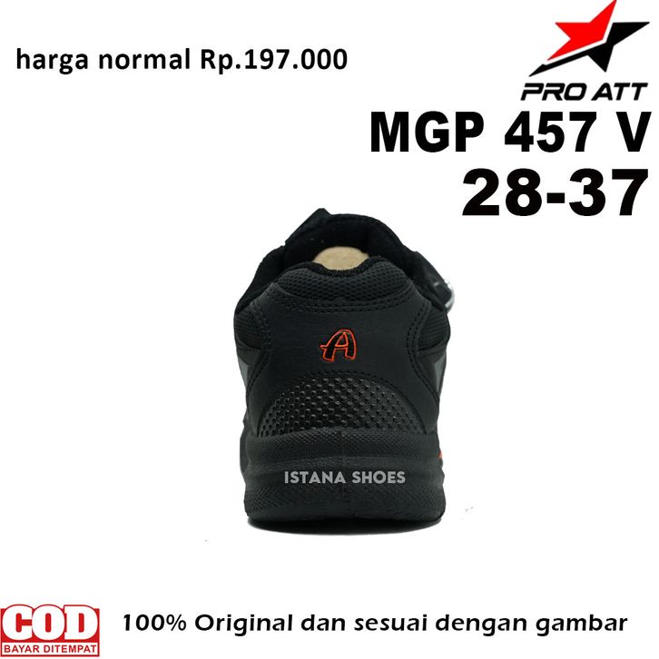 SEPATU PRO ATT MGP 457 V MAGNET, SEPATU SEKOLAH ANAK LAKI LAKI PEREMPUAN COWOK CEWEK PAUD TK SD SMP HITAM PEREKAT