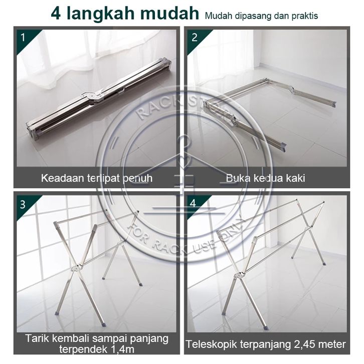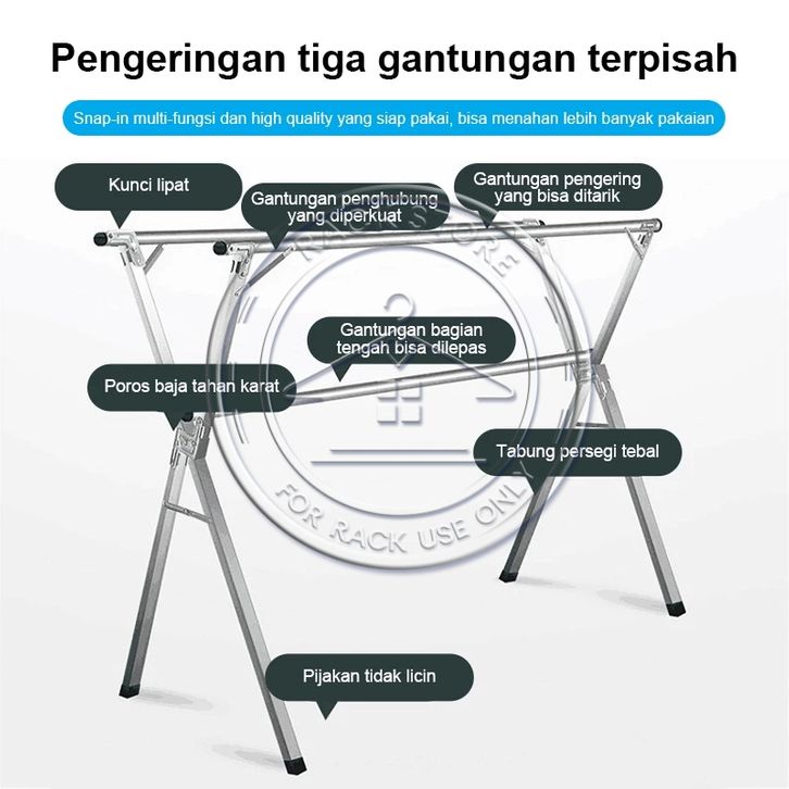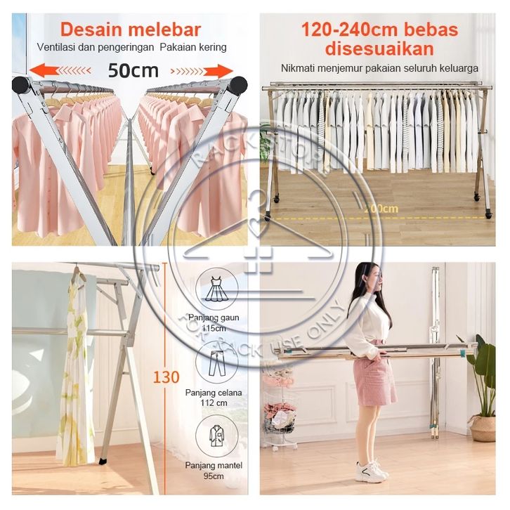 Jemuran Baju Stainless Jumbo Lipat Besi Dan Anti Karat Kuat Tempat Jemuran Pakaian Lipat Portable 240cm