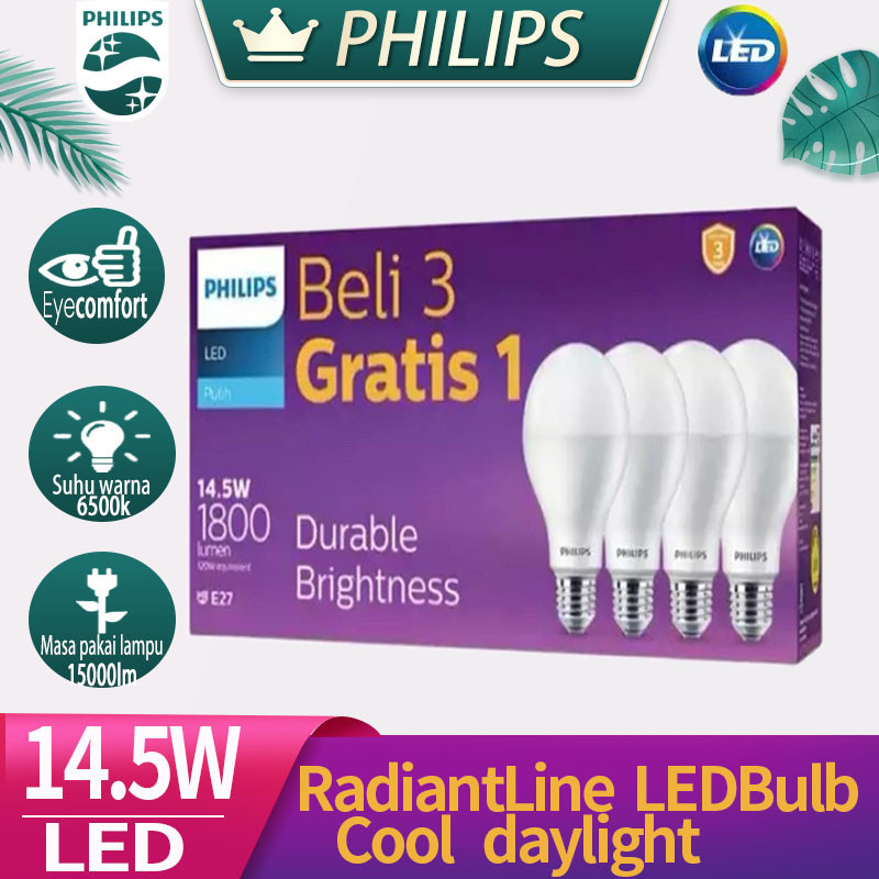 LAMPU LED PHILIPS 【3 GRATIS 1】PAKET 13 WATT 8W 12W 6500K 【CAHAYA NYAMAN】 LOW LOSS RUMAH LED BULB