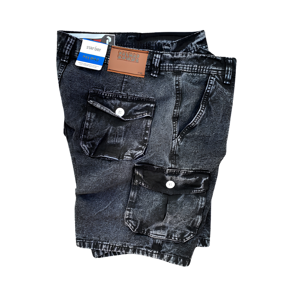 SOCIETY - Celana Pendek Cargo Pria Jeans Washing Snow Size 28 29 30 31 32 33 Hitam Abu Navy Ice Blue