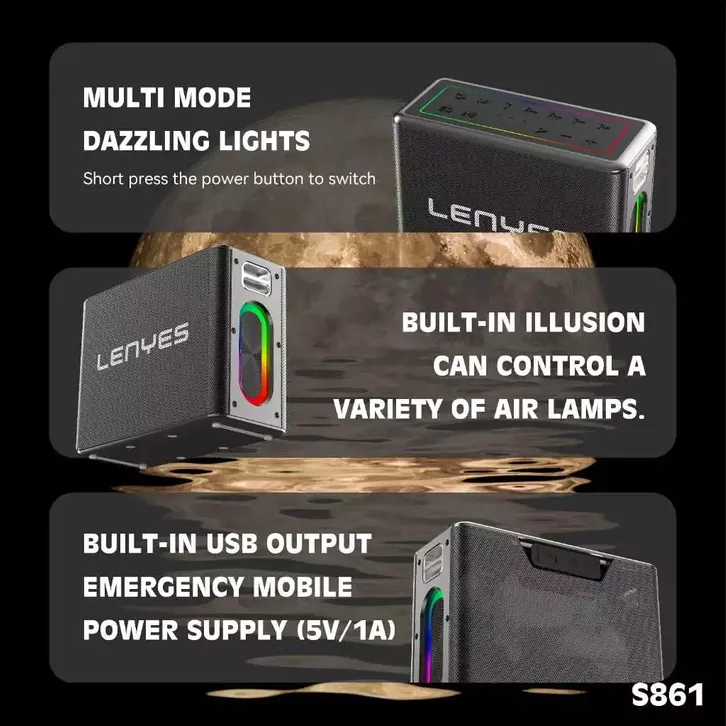 Speaker LENYES S861 150W KTV RGB LED Light Microphone Karaoke Bluetooth 5.0 Wireless Portable Original Official Store