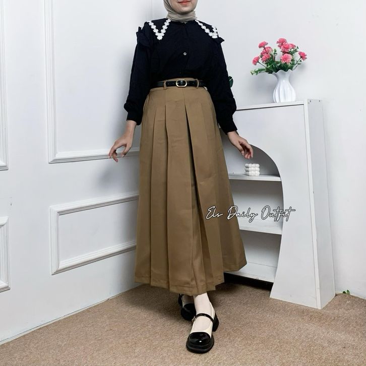 Flo Pleated Skirt Rok Flare Wanita Semiwol Rok Panjang Wanita Muslim Remaja Dewasa Kekinian