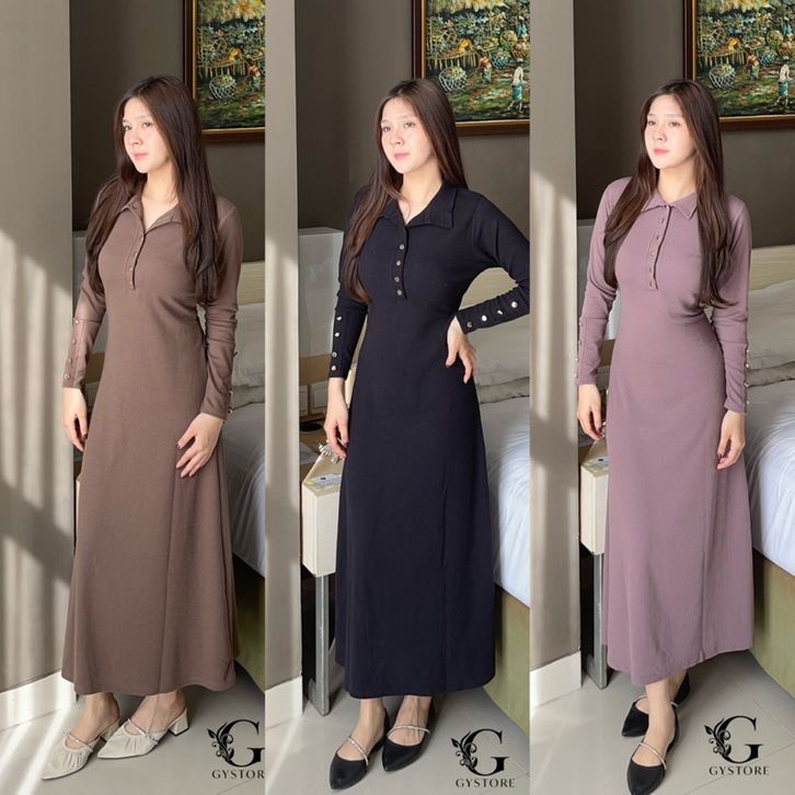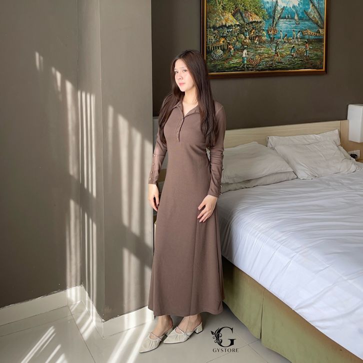 Gystore - Dara Knit Dress Longsleeve - Dress Knit Casual Midi Wanita Lengan Panjang