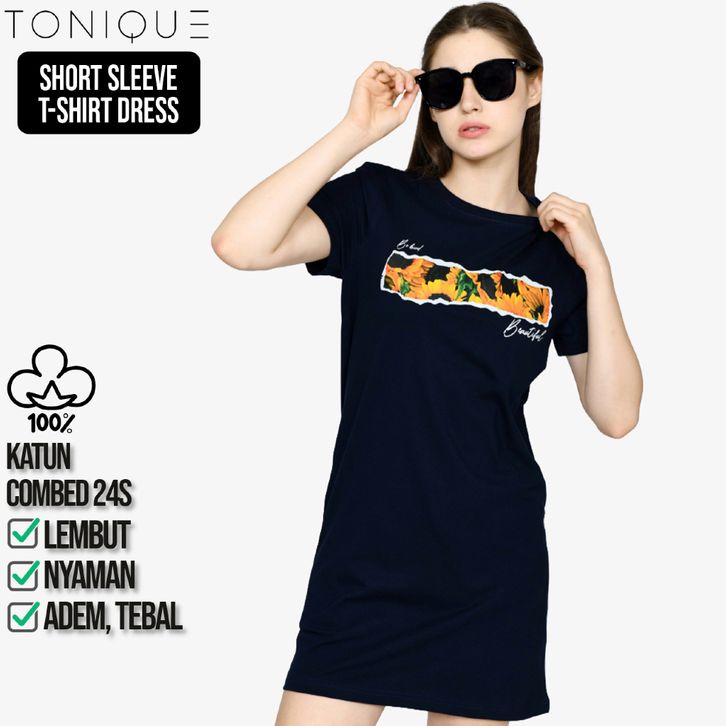 TONIQUE Dress Kaos Katun Combed 24s Knit Wanita Navy Biru Women's Regular Fit Cotton Combed 24s Knit Sunflower / Dress