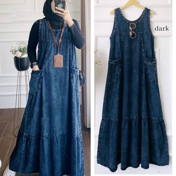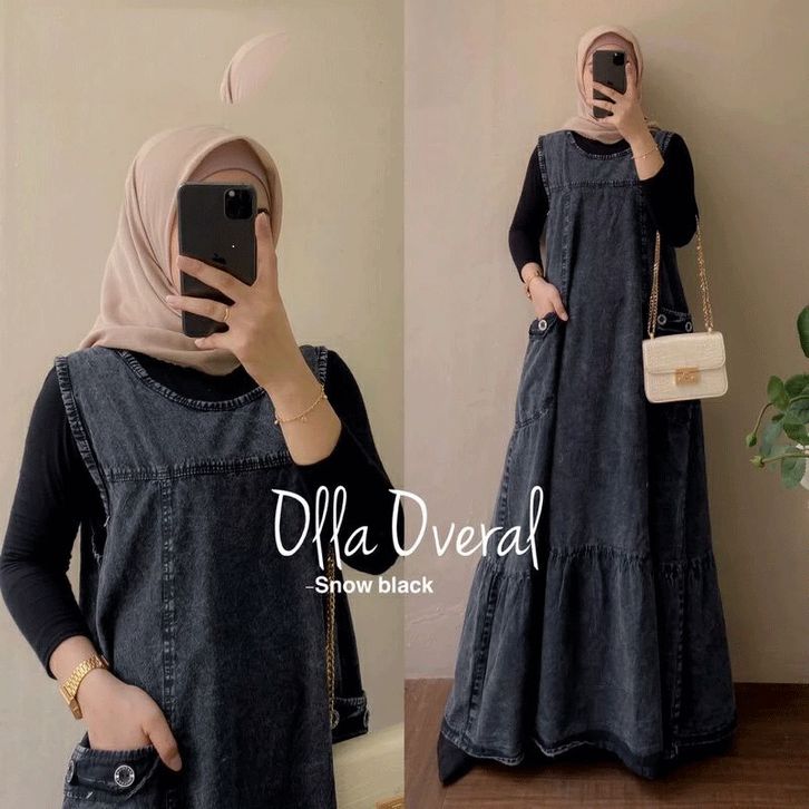 OLLA OVERALL SOFT JEANS KODOK PANJANG MUSLIM SNOW BLUE DAN SNOW BLACK GBM