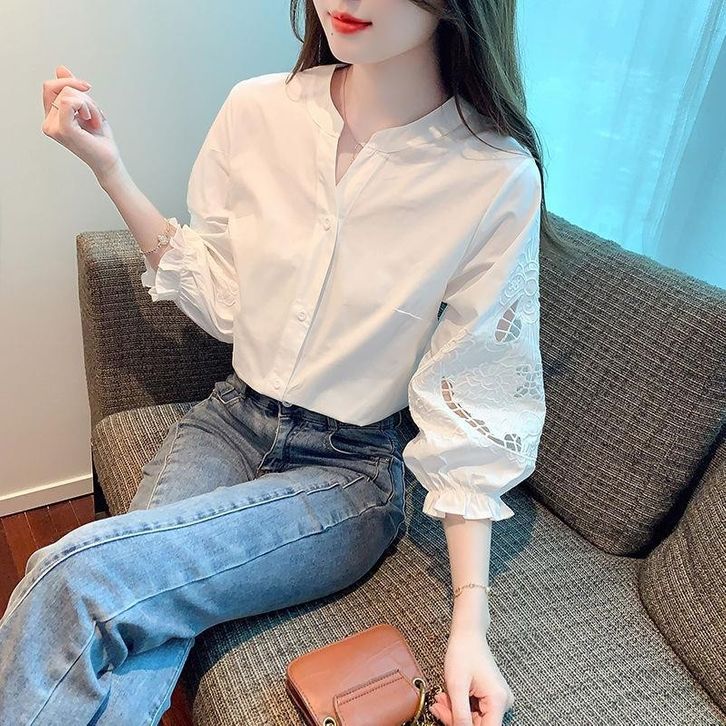 Kemeja Lengan Pendek Wanita, Mesin Bordir Puff Lentera Kemeja Lengan Pendek Sifon Wanita