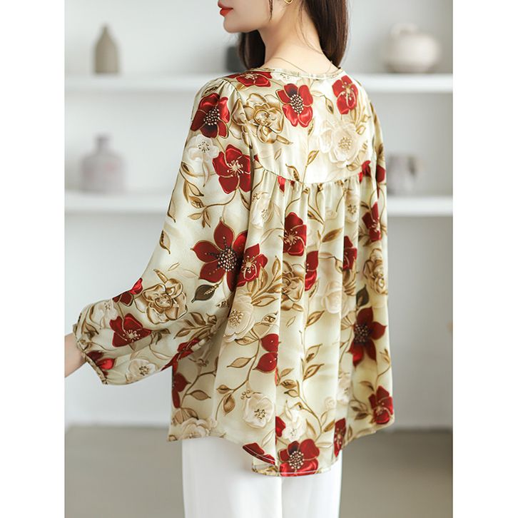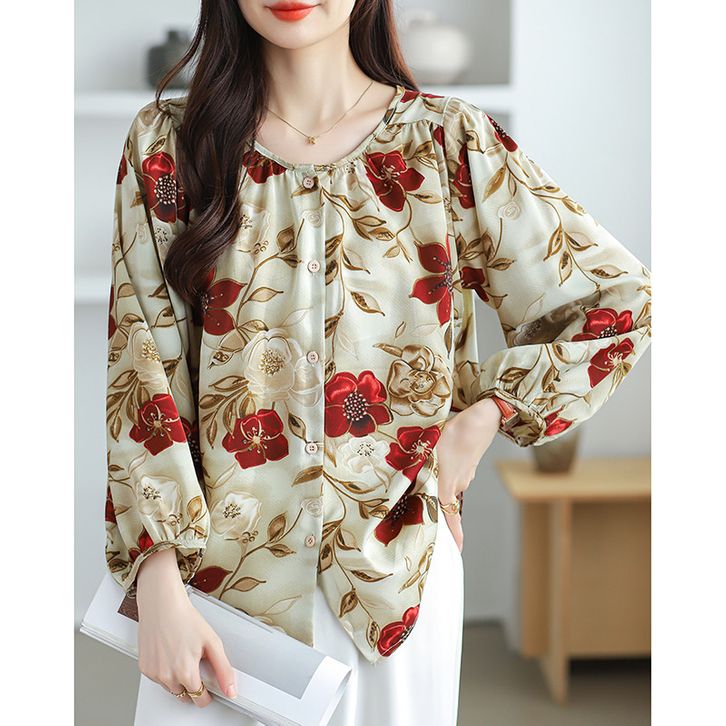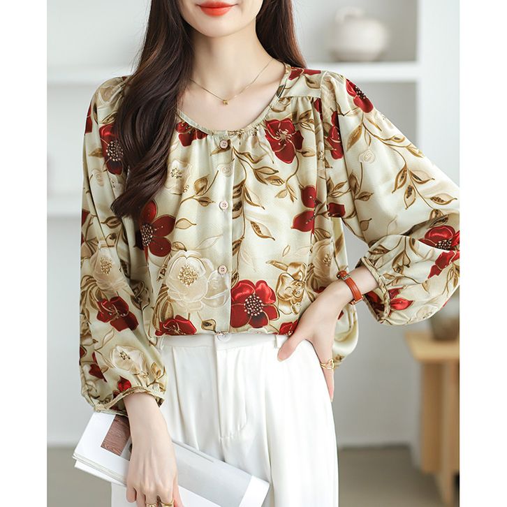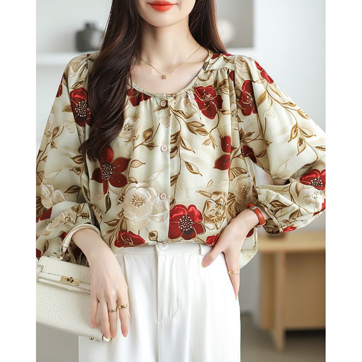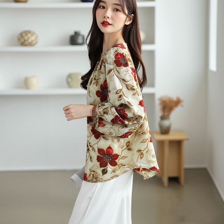 M0DEe Korea Kemeja Wanita Longgar Kasual Lengan Panjang Sifon Blus Kerja