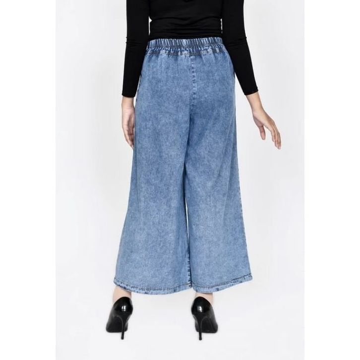 Celana Panjang Wanita Kulot Jeans Jumbo Snow Tali Serut / Kulot Jeans Pingang Full Karet Celana Kulot Wanita