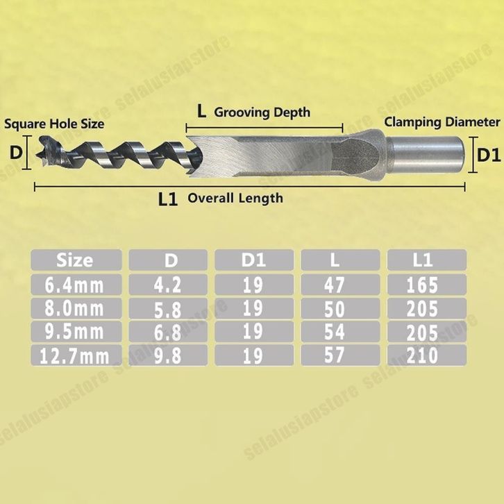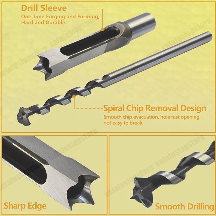Mata bor bobok kayu 3/ inch / Chisel Set / Mortising Chisel/4pcs Set 6.4//9.5/12.7 mm Persegi Hole