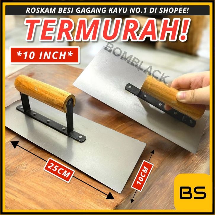 Raskam Besi 1 Inch Gagang Kayu Roskam Penghalus Tembok Sendok Semen Acian