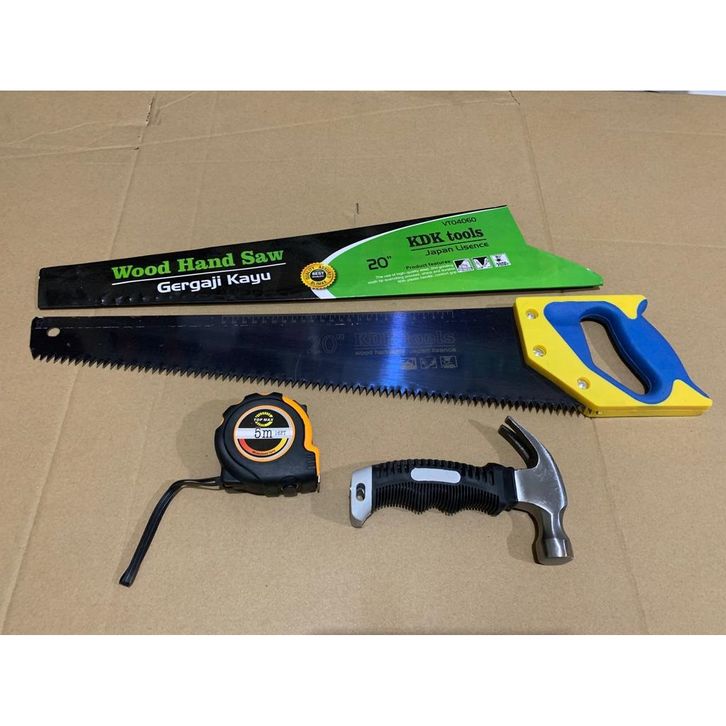 Paket Alat Tukang Bertukang Bangunan - paket gergaji kayu dan palu kambing dan meteran 5 meter //