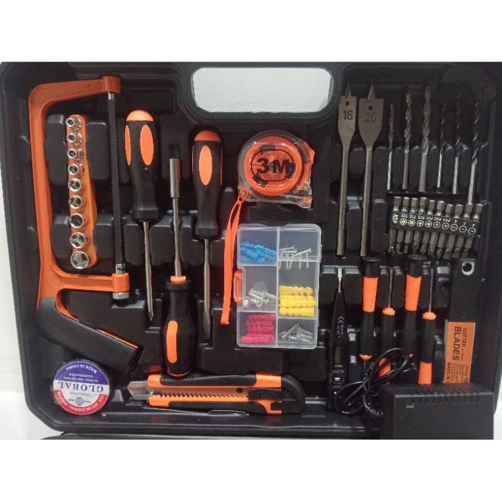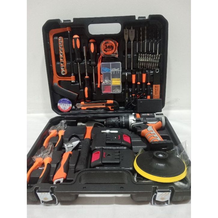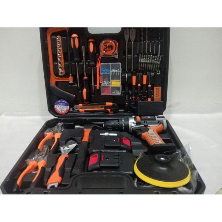 Mesin Bor Baterai Cordless V+ToolkitSet Lengkap Merk SHINING..Profesional Seaguna