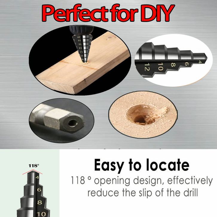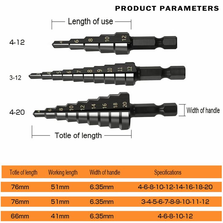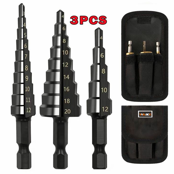 Mata Bor Pagoda Untuk Baja 3pcs Pcs Spiral HSS Steel Titanium Coated Mata Bor Pagoda Besi Kerucut